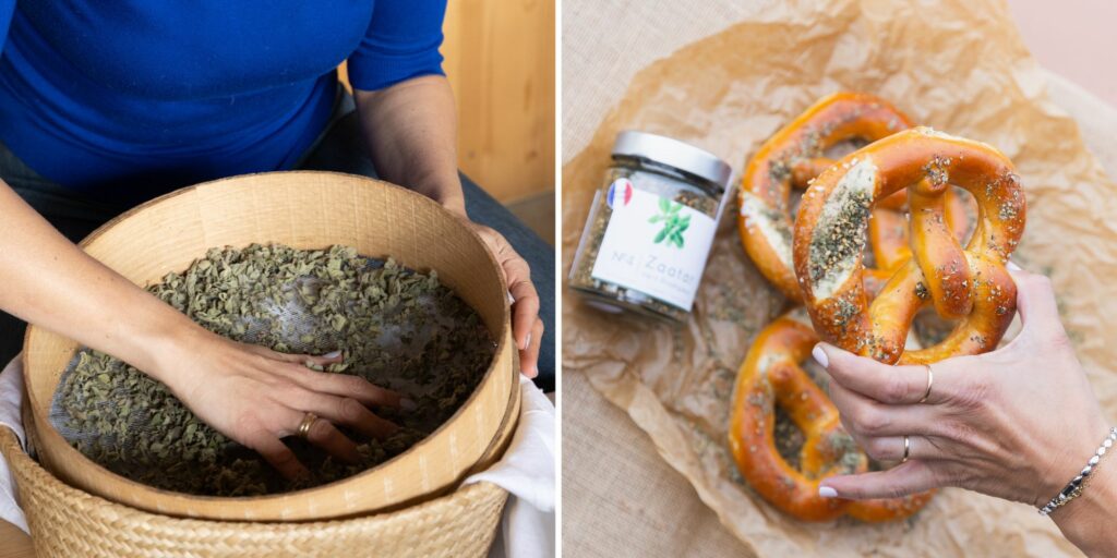Le produit star de la maison : le zaatar, une recette transmise par la grand-mère de Sarah, mélange de thym sauvage, de sésame torréfié, d’huile d’olive et de sumac, véritable petite bombe d’antioxydants. « Au Liban, le zaatar ne s’achète pas, il se prépare à la maison en été et se transmet, précise Sarah. Au départ, je voulais en importer et le revendre ici, mais j’ai été échaudée par les douanes françaises qui ont trouvé des substances cancérigènes dans un produit que je pensais naturel. »